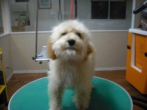 まだ赤ちゃんなのでシャンプーと部分カットで少しづつトリミングになれてもらってます☆