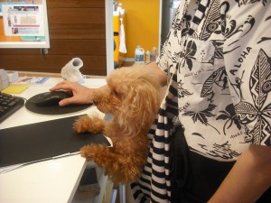 ドッグランで遊ぶ前に肛門腺絞り・足回りカット・爪切りです(*^^)v