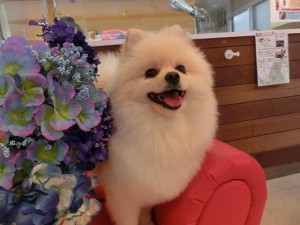 お次はホテルにお泊り中のポメラニアンのロビンちゃん☆お帰り前にシャンプー&部分カットのご利用です!
