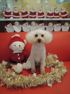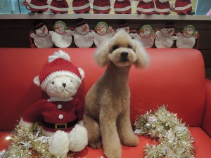 お耳も短めにして、クリスマスリボンで可愛くなりましたよ~♡