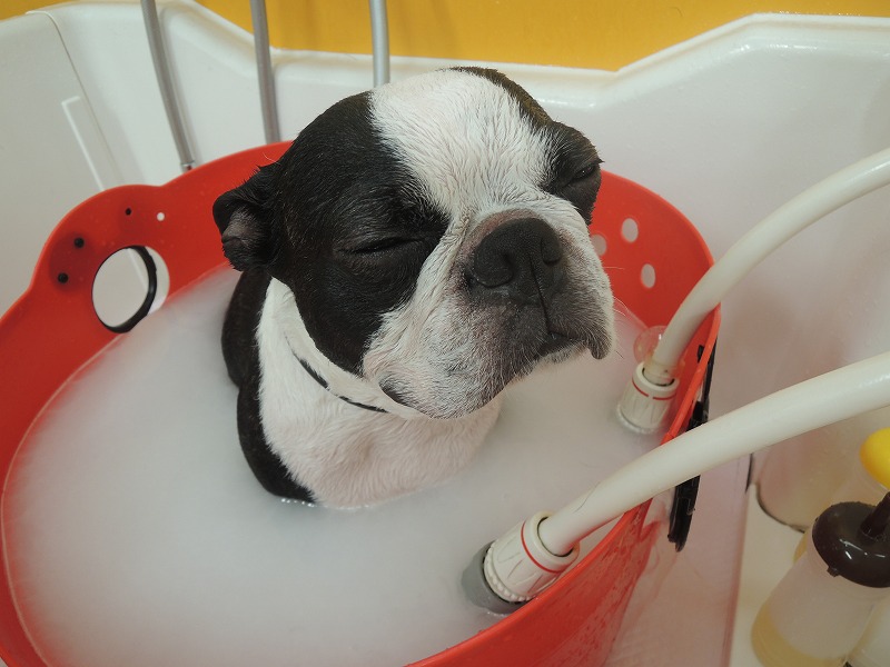 お次はボストンテリアのハートちゃんがシャンプー、マイクロ、ゼオライト歯磨きでご来店♪