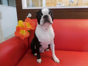 お次はボストンテリアのハートちゃんがシャンプー、マイクロ、アクアゼオ歯磨きでご来店♪